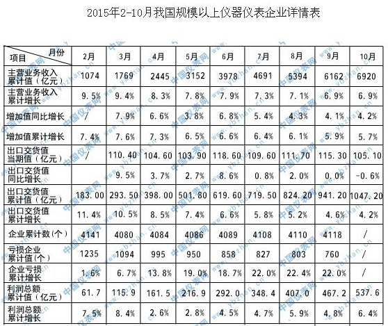 2015年1-10月我國儀器儀表發(fā)展態(tài)勢解析