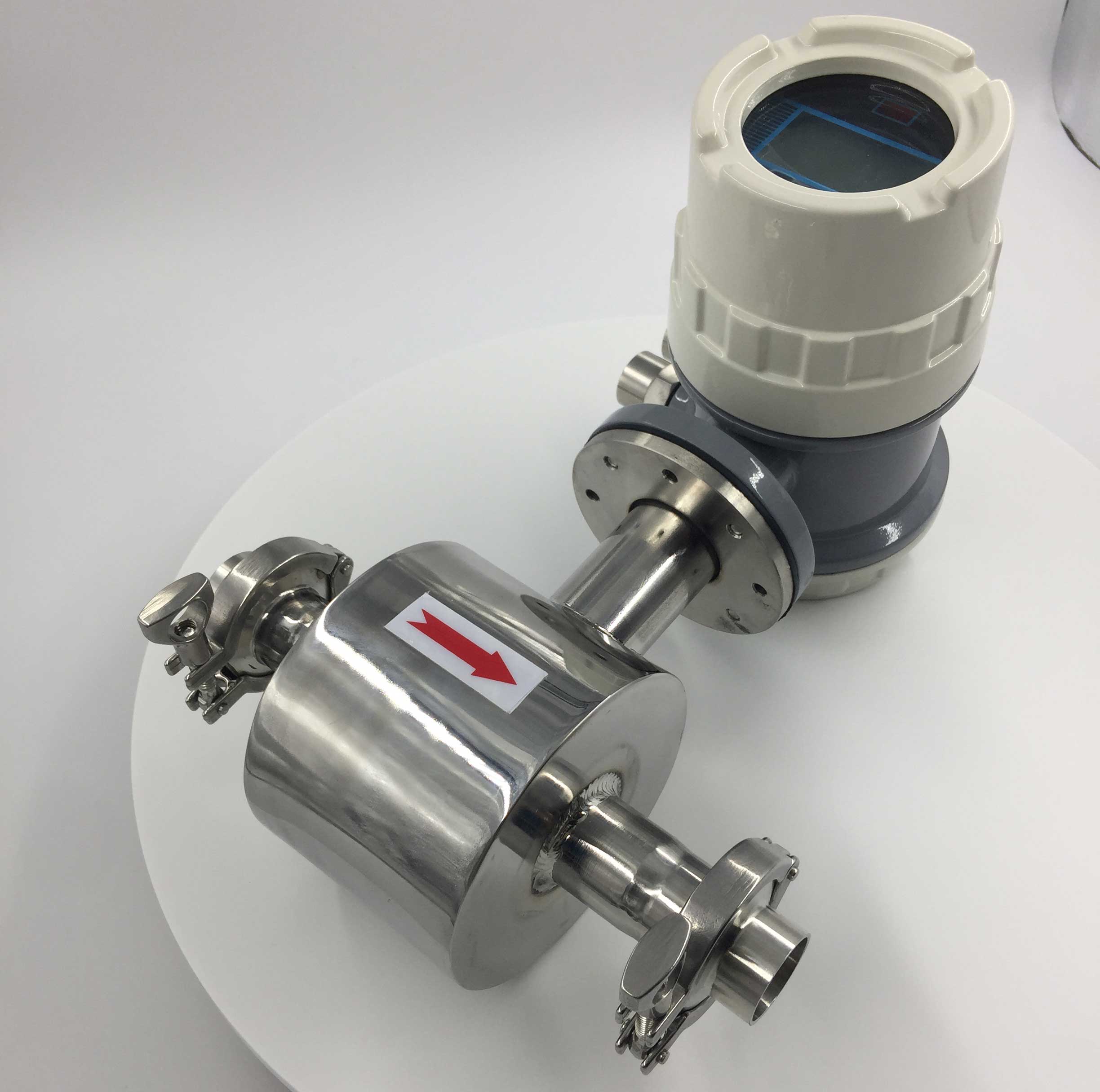 測量流量時,流體流過垂直于流動方向的磁場,導電性液體的流動感應出一個與平均流速成正比的電勢,因此要求被測的流動液體高于最低限度的電導率。其感應電壓信號通過兩個電極檢出。并通過電纜傳送至轉(zhuǎn)換器,經(jīng)過信號處理及相關運算后,將累計流量和瞬時流量顯示在轉(zhuǎn)換器的顯示屏上。